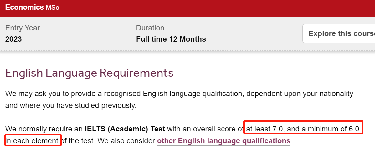 不过要注意,经济学硕士专业和高级营销管理硕士专业的英语语言录取要求仍为雅思总分7.0(单项不低于6.0)。