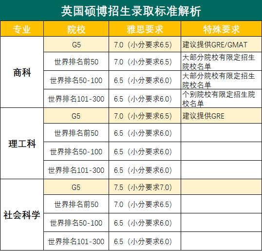 除此之外,伯明翰大学、曼彻斯特大学、利兹大学等知名大学;中国香港地区的香港大学、香港中文大学、香港科技大学;加拿大的多伦多大学、麦吉尔大学;澳大利亚的悉尼大学、墨尔本大学等学校的大部分专业,都是以雅思6.5分作为语言要求的门槛。值得注意的是,不同专业和院校会对雅思单项分数有要求。