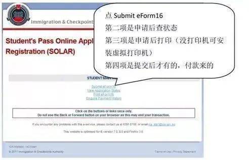 注意:一定要记得打印填写好的e-Form 16,这个表将用于换取学生签证。