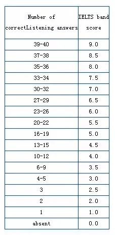 在雅思听力考试中,40题总分9分,是按照一定的题量来计算分数档,大家可以参考以下雅思听力分数对照表来预估自己的听力成绩: