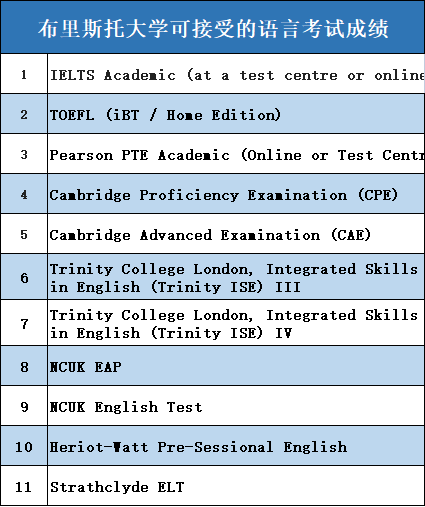 布里斯托大学可接受的线上语言考试有:IELST Online、PTE Online以及TOEFL Home Edition