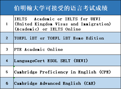 除了线上语言考试,伯明翰可接受的线下语言考试如下: