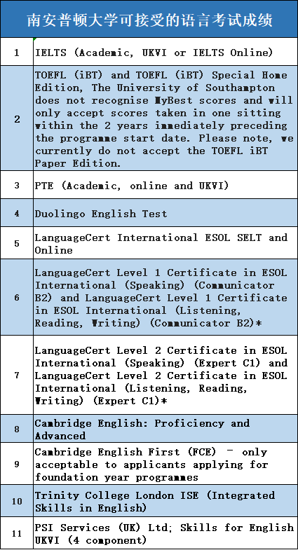 需要注意的是,所有语言考试的都需要在两年有效期限内,另外并不是所有的专业都接受以上的语言考试。