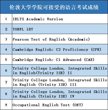 伦敦大学学院目前可以接受三种语言线上考试:PTE Academic Online test、TOEFL iBT Special Home Edition test 、IELTS Indicator test,这三种语言考试仅适用于22/23和23/24两个学年。