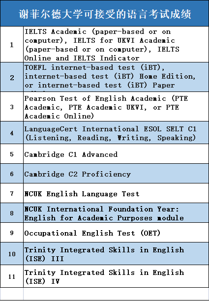 谢菲尔德大学可接受的线上语言考试如下:PTE Academic Online、 TOEFL Home Edition